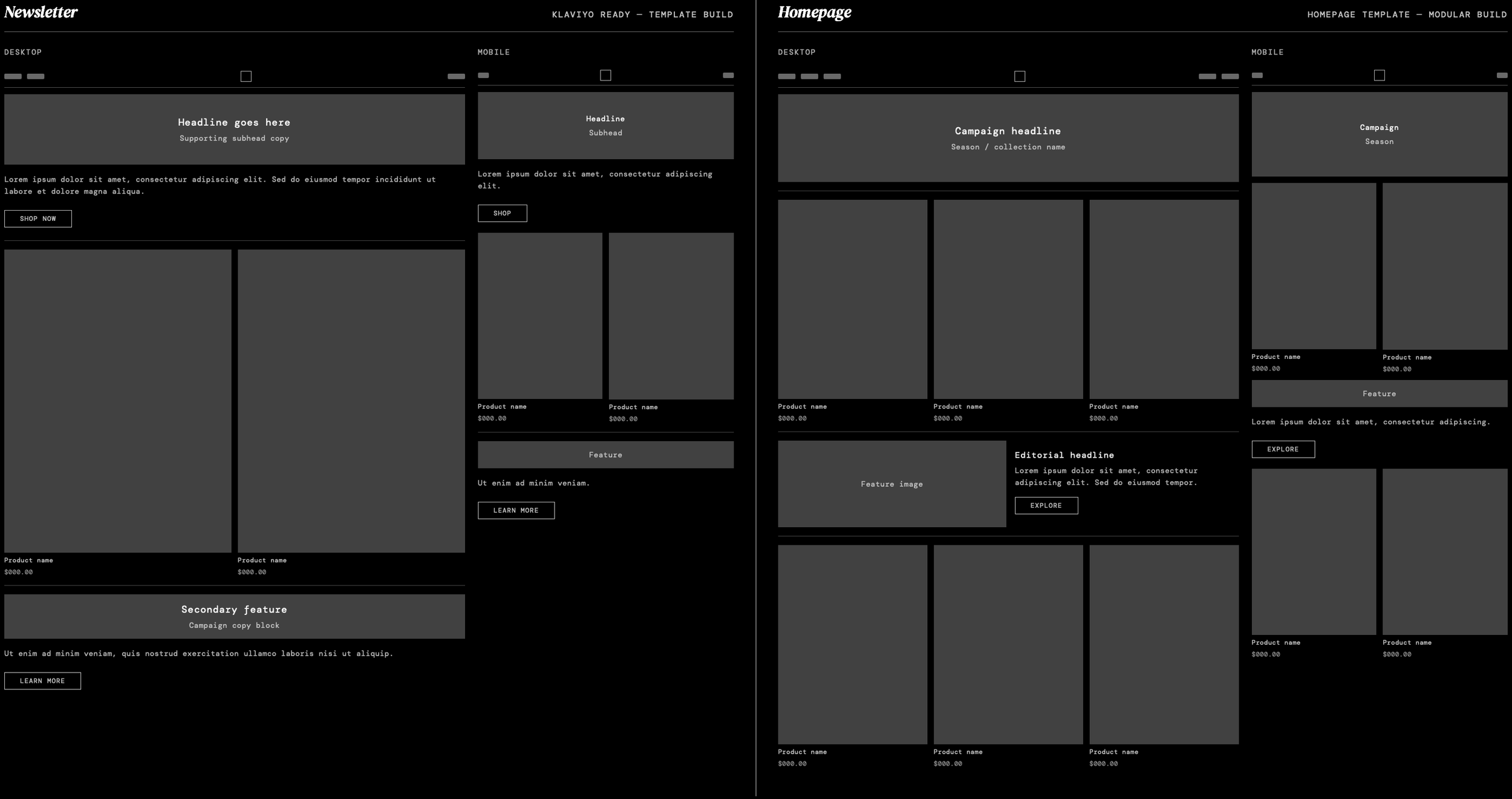 A unified design system across every digital surface — newsletter and homepage — each built with reusable modules for desktop and mobile, designed for rapid deployment and brand consistency at scale.